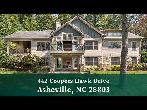 Luxury mountain living in coveted Biltmore Park! Set on 1.5 private wooded acres just minutes from Town Square, this custom retreat pairs serene seclusion with everyday convenience. A winding drive leads to sweeping westerly views and spectacular sunsets. Inside, soaring ceilings and a dramatic two-sided stone fireplace anchor the great room, which opens to a brand-new TimberTech deck with sleek cable railing. The chef's kitchen shines with a large island, granite counters, high-end cabinetry, sunny breakfast nook, and scullery with built-ins. The main-level primary suite offers a spa-like bath with freestanding tub and oversized frameless tile shower. Downstairs features three bedrooms (one en suite), two baths, a spacious family room with wood-burning fireplace, and a covered flagstone porch-perfect for cool mountain evenings. Elevator to all three levels, including an unfinished attic ready for future expansion. This home is a true find for the discerning buyer.